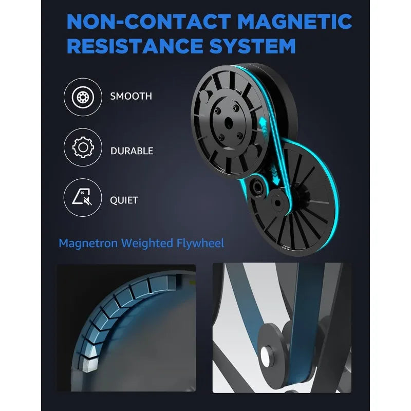 - 16-LEVEL MAGNETIC RESISTANCE SYSTEM: Our exercise bike allows for 16 levels of resistance adjustment and 30 dB silent ride. That's because it utilizes a non-friction magnetic resistance system that takes advantage of silent and smooth resistance adjustments.Multiple levels of resistance to meet the workout needs of beginners to professionals. and he low decibel ride keeps you from disturbing others.